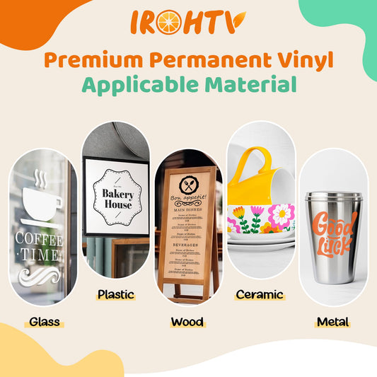 IROHTV Permanent Vinyl PK Vinyl Roll Compatible with Cricut-12'' x 50FT Adhesive Vinyl for Cutting Machine, DIY for Customization, Durable on Smooth Surface